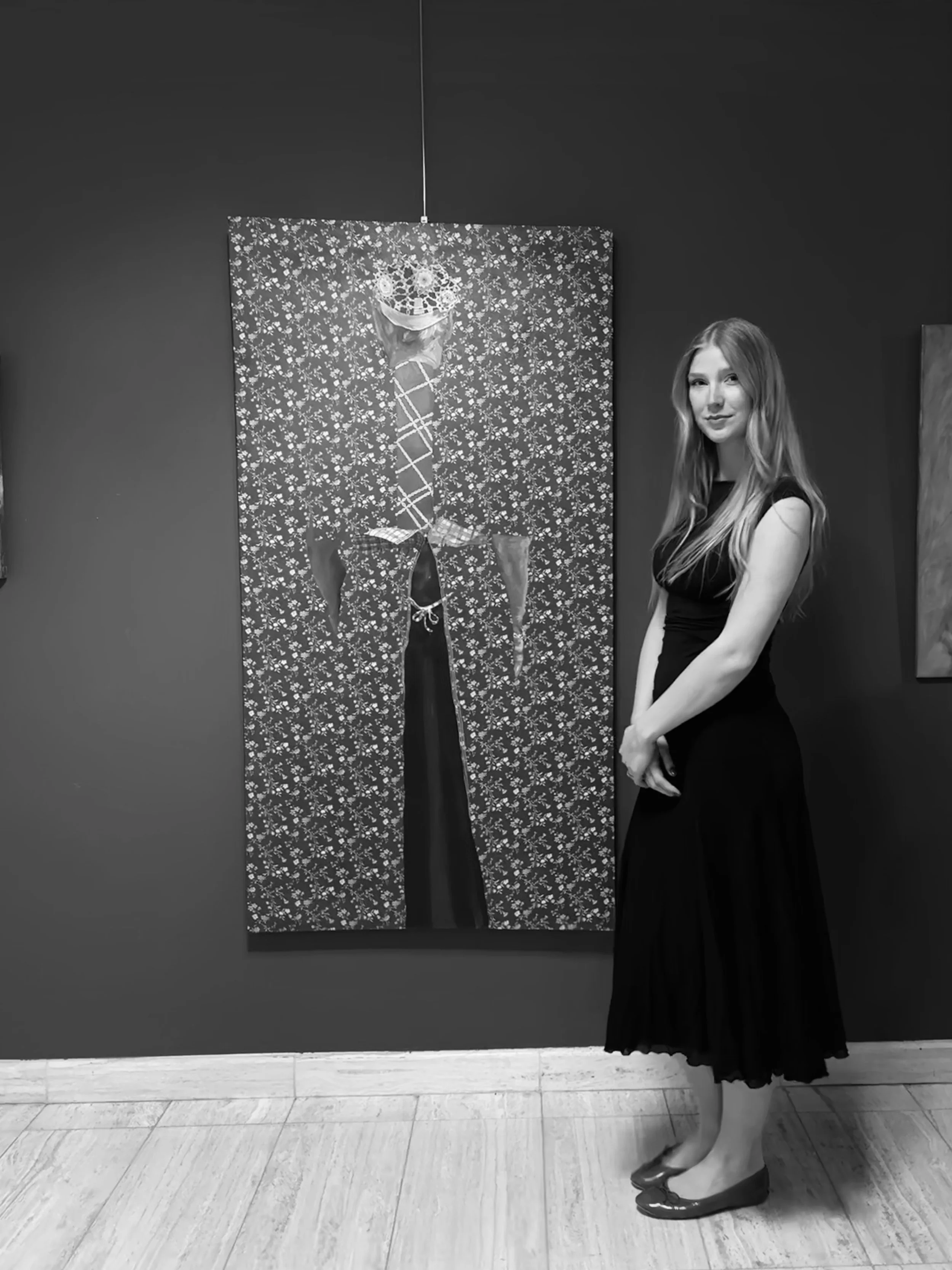 Inspired by the traditional clothing of the town Bunschoten-Spakenburg in the Netherlands and the towns outlook on grief and the use of different fabrics in this process, I have created this tryptic depicting women in different stages of grief.